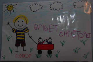 And on one of my first days alone, Bridget had a melt-down (notice a theme here?) while I was changing Christopher's diaper. I ended up putting Christopher in a safe place while I ran to pick her up. As soon as I started running, Patches started running, too, to safely escort me to Bridget. (All 7 feet it took me to get there)